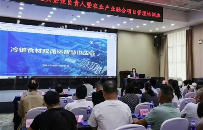 2025年9月28日至30日,湖南省农业产业化省级龙头企业负责人培训班在长沙开课,省农业农村厅党组成员、副厅长祝云武到场开班讲话。这次培训专门邀请企业、高校专家,围绕农业经济趋势、农产品加工创新、品牌建设、金融赋能等内容授课,而玉湖冷链作为冷链行业的“链主”企业,也派出核心团队参与——集团执行董事黄铮洪、玉湖冷链董事兼高级副总裁李俊燕,以“冷链食材双循环智慧供应链”为主题,给210家2024年新认定的省级农企负责人,带来了全链条实战解决方案。