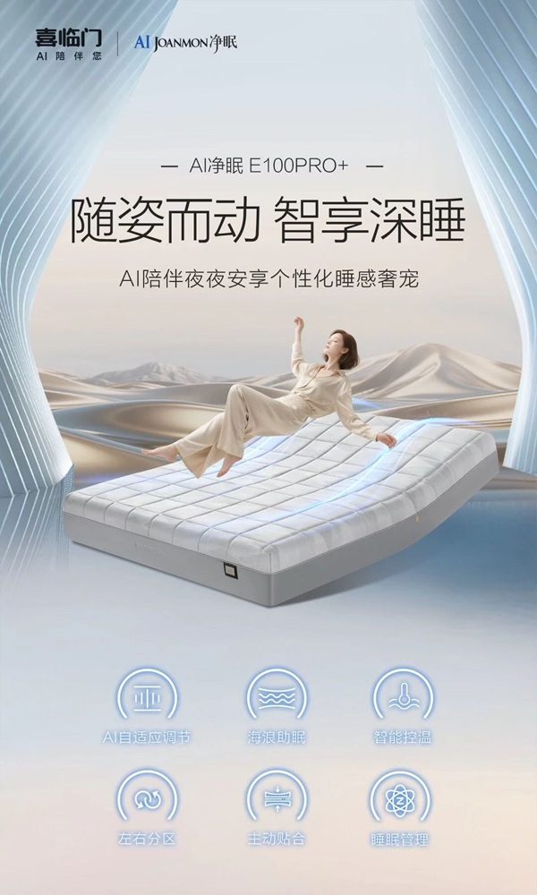 以科创做礼,铸友谊之魂”,产品力筑牢发展根基,“世界的礼物”能承载战略意义,核心在于硬核产品力,技术创新是其发展的核心驱动力。AI净眠E100PRO+床垫集喜临门睡眠科技之大成,AI自适应算法与18组支撑气囊可实时调节支撑力度,实现“床适应人”,延长深度睡眠;搭配远红外温控,升级为个性化睡眠方案,彰显中国智造水平。
