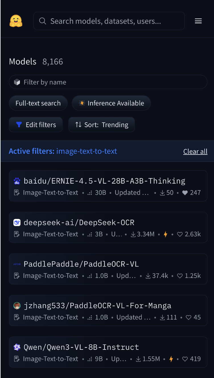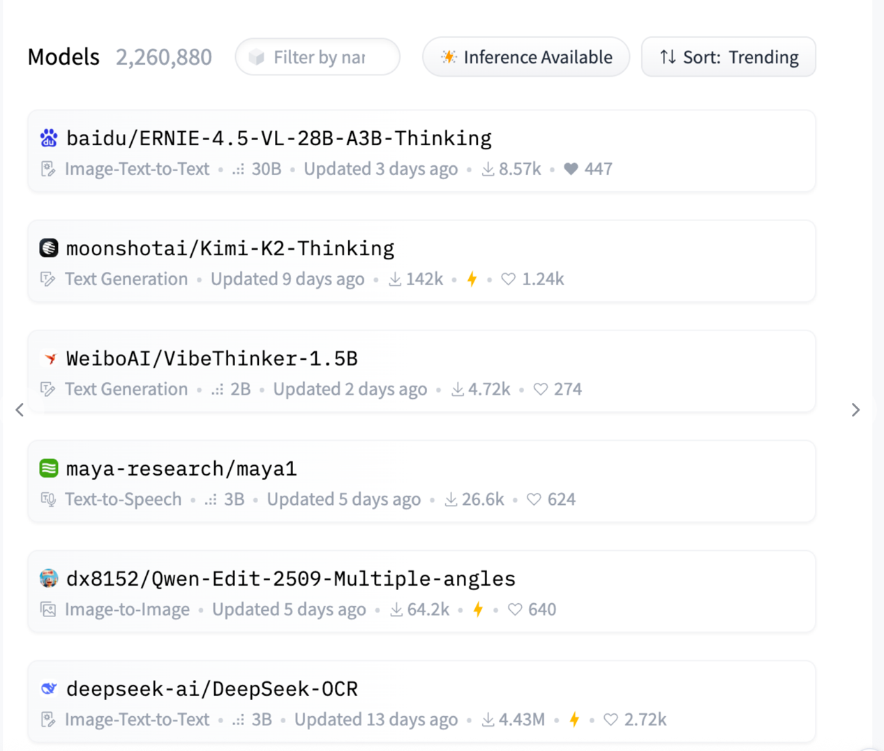 11月17日消息,HuggingFace官网显示,百度此前开源的文心最新多模态思考模型ERNIE-4.5-VL-28B-A3B-Thinking已登上Huggingface模型趋势榜全球第一。