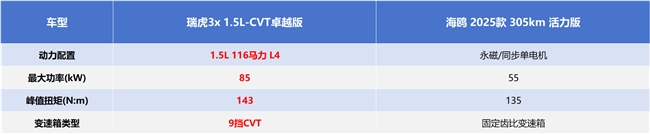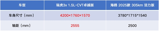 要选靠谱伙伴,或许还得看油车。今天,我们不妨锁定6万元区间,聚焦瑞虎3x 1.5L-CVT卓越版(以下简称:瑞虎3x)和海鸥 2025款 305km 活力版(以下简称:海鸥),看看这场“油电对决”,谁是年轻人春节座驾更优解。